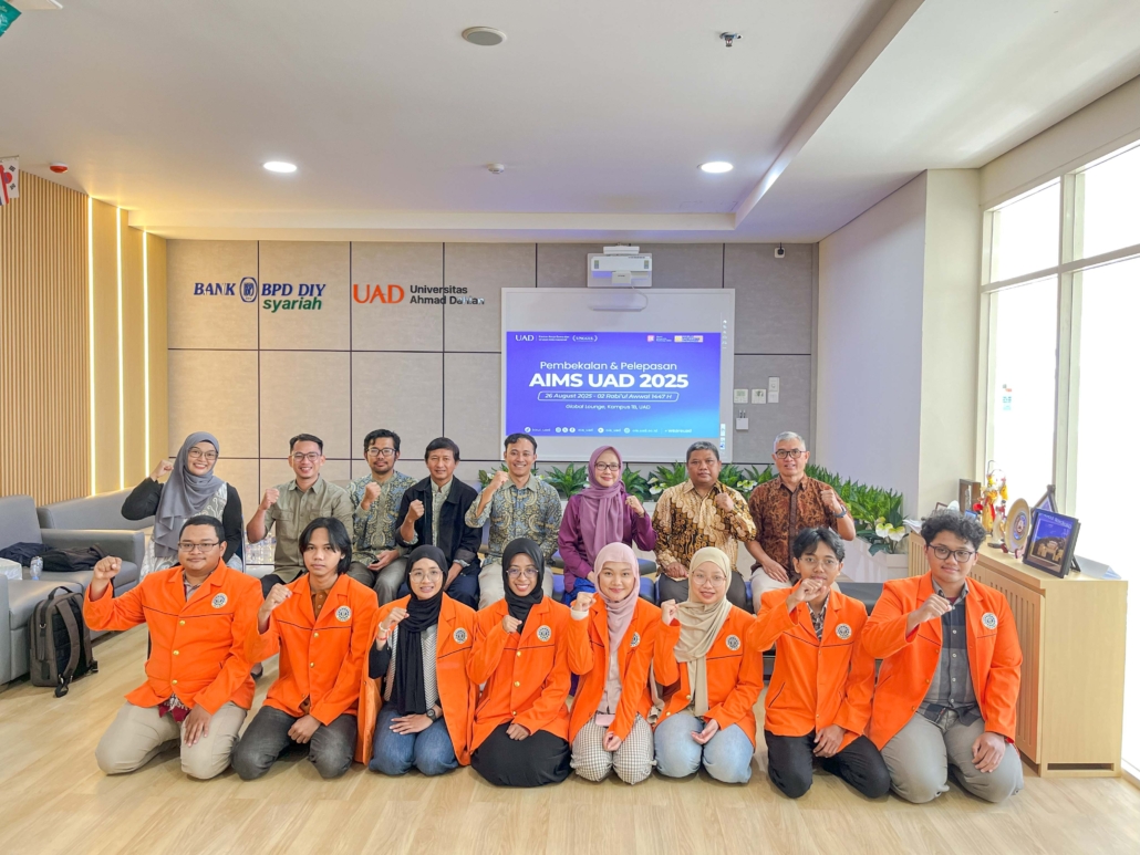 The pre-departure orientation and send-off ceremony for AIMS 2025 participants was organized by the Office of International Affairs (KKUI) UAD at the Global Lounge, Campus 1B UAD.